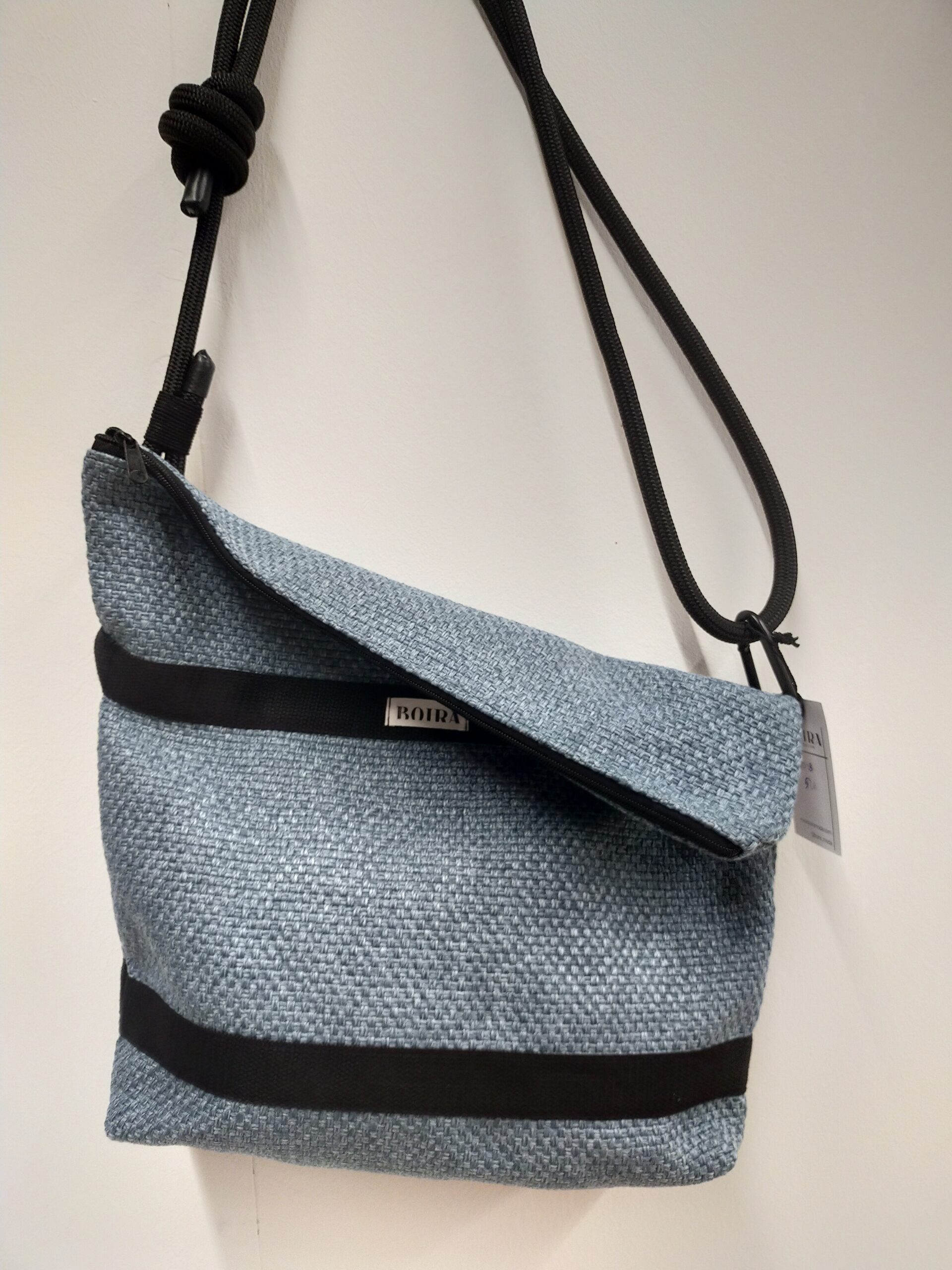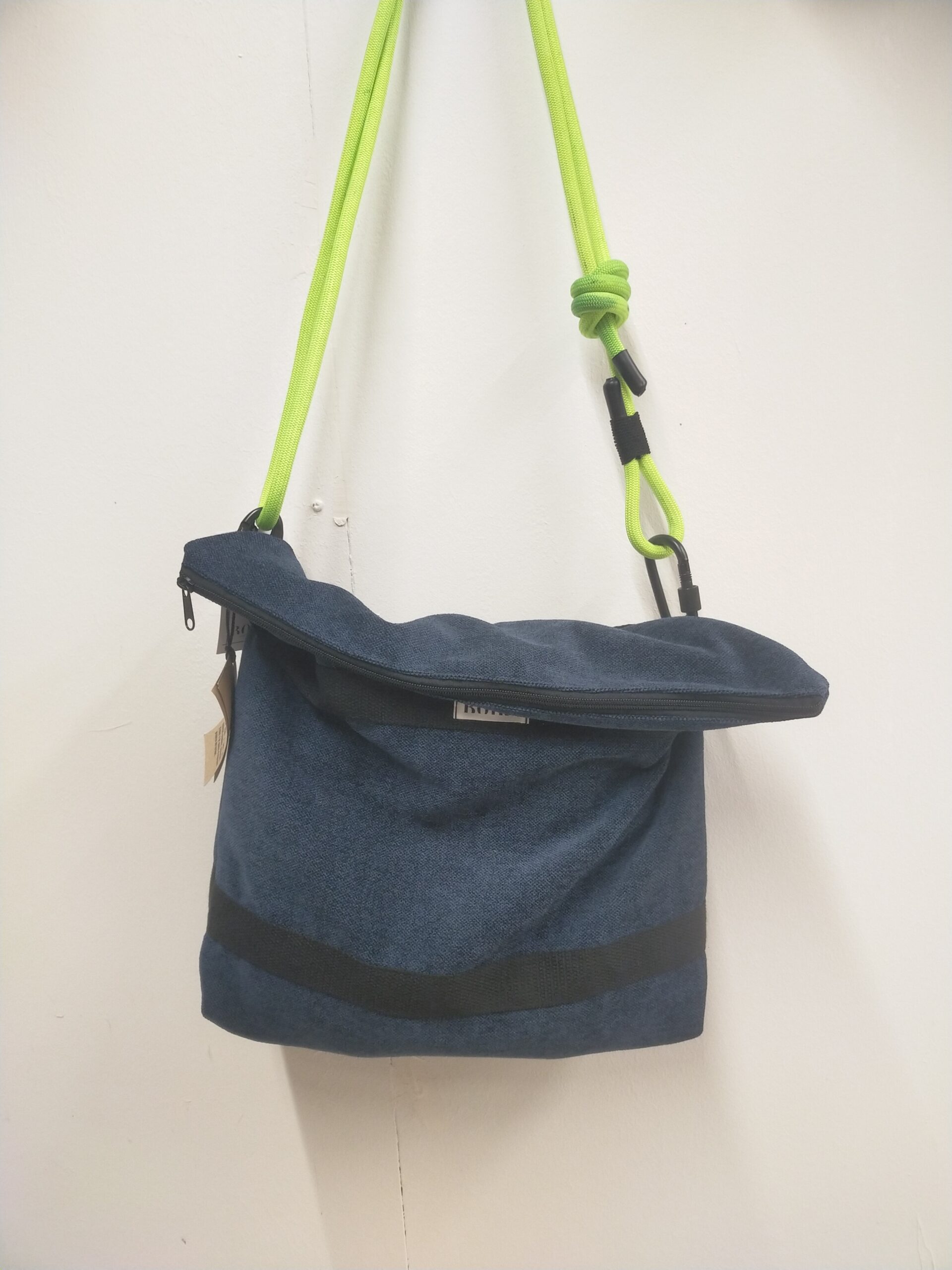 Amb una mida de 45 × 45 cm, és una bossa versàtil que s’adapta a tu: la pots portar tipus sobre quan va més buida, o més plena i oberta quan necessites espai extra. La corretja, feta amb corda d’escalada regulable, aporta resistència i personalitat. L’interior està completament forrat per garantir durabilitat i comoditat.