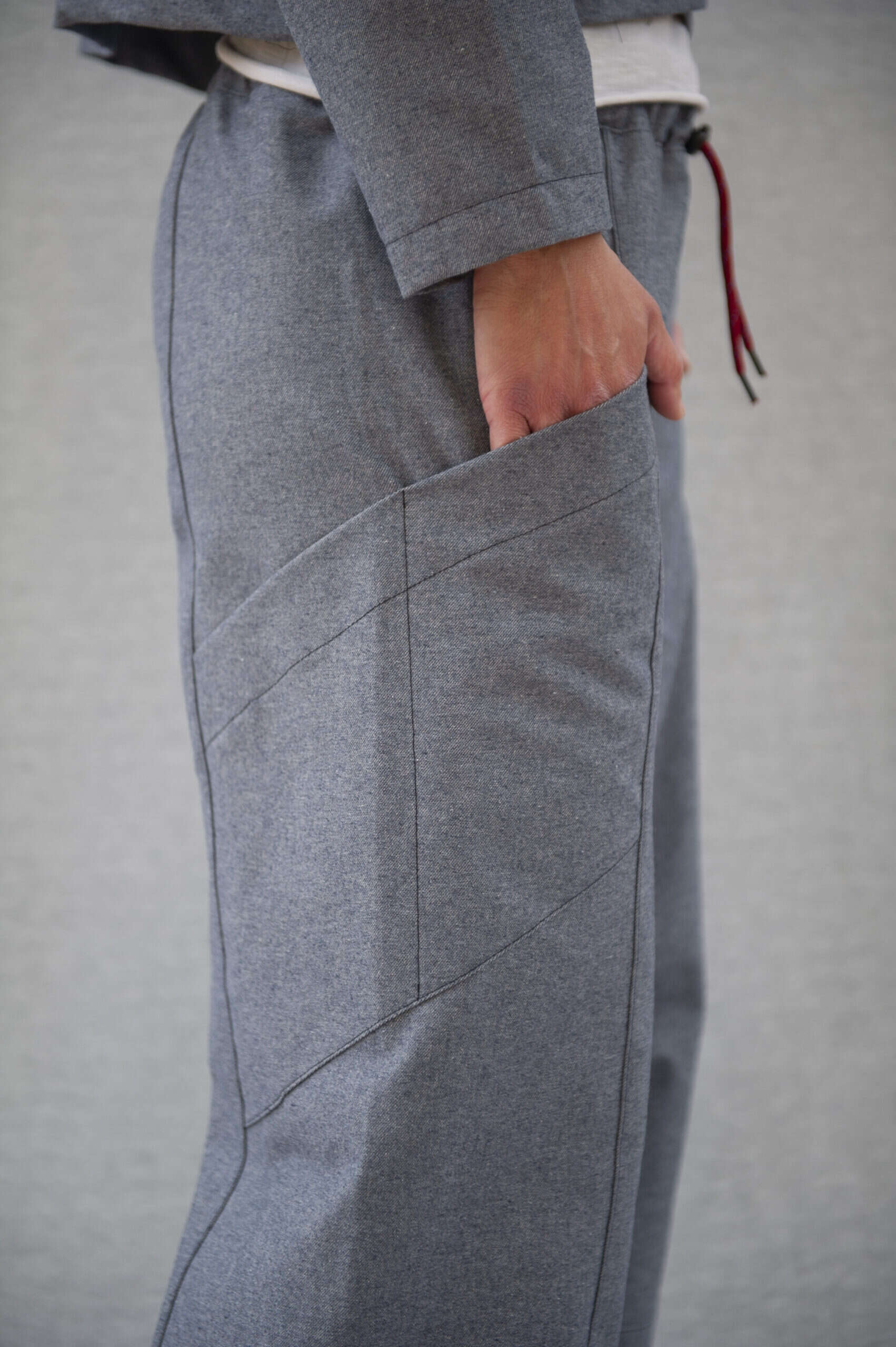 Pantalón largo con bolsillos laterales. Goma en la cintura y en los tobillos. Diseño original y cómodo.